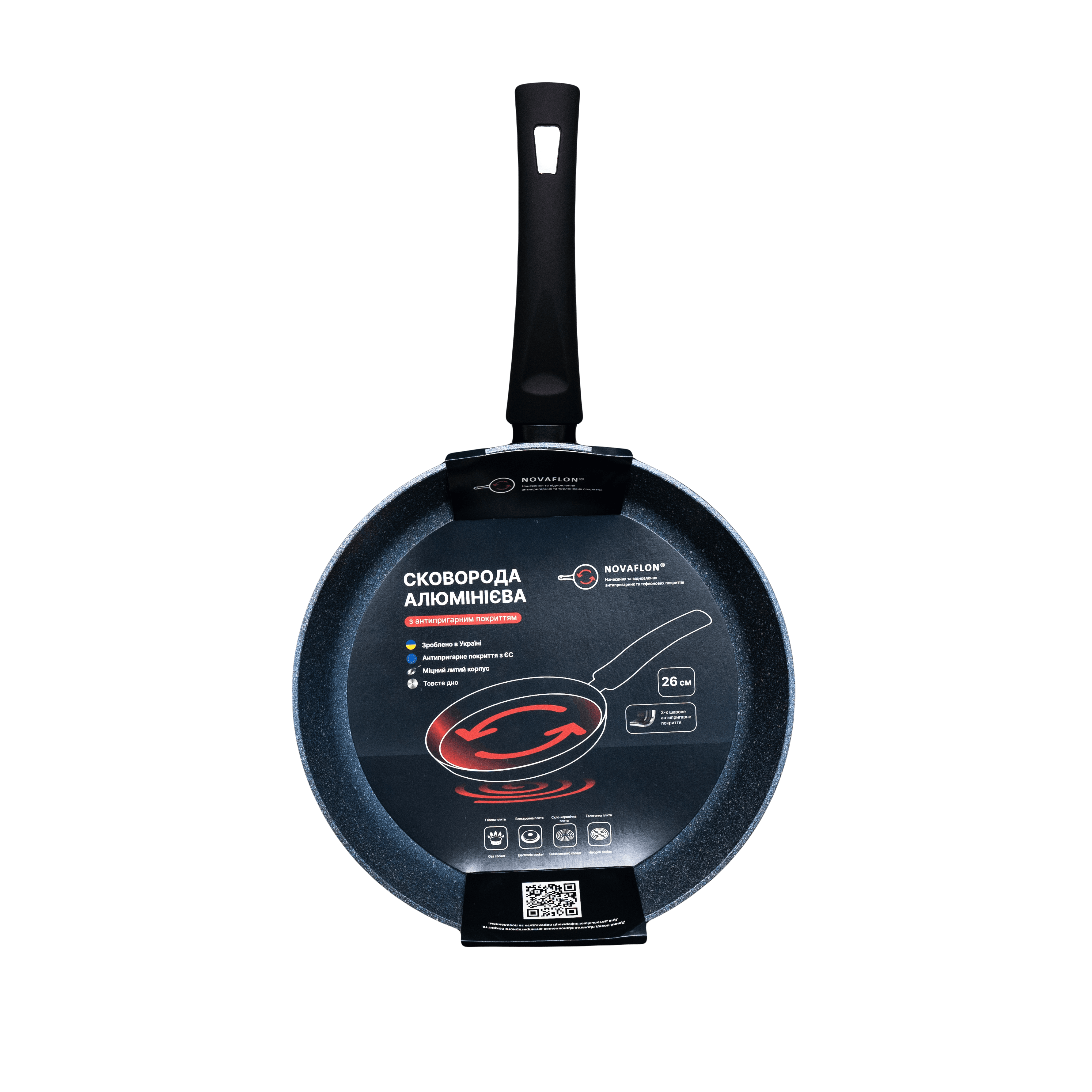 The frying pan features a reinforced bottom for optimal heat distribution and compatibility with gas and electric stovetops. Blue Stone is ideal for daily cooking with minimal oil, preventing food from sticking and making cleaning easy after use. Choosing Novaflon means getting not just cookware but a reliable Ukrainian brand with European-quality standards and durability guarantees that meet the highest kitchenware requirements.