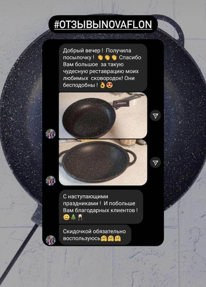 Покрытие является результатом восьмилетнего опыта предприятия Novaflon в сфере восстановления антипригарных поверхностей для клиентов в Украине и странах Европейского Союза. Используются только высококачественные европейские материалы, обеспечивающие безопасность и экологичность продукции. Конструкция сковороды включает усиленное дно, которое улучшает теплообмен и делает продукт совместимым с газовыми и электрическими плитами.
